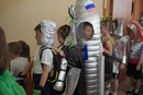 Кульминацией мероприятия стало дефиле в нарядах из «космического мусора». Костюмы ребята делали вместе с родителями заблаговременно. И, надо отметить, это были настоящие шедевры, созданные из подручных средств (фольги, полиэтилена, проволоки, ткани). А кого здесь только не было – космонавты, астронавты, многочисленные звезды и даже ракета!